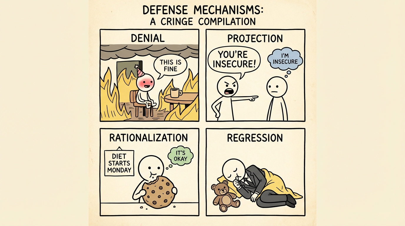 Defense mechanisms are unconscious psychological strategies your mind uses to protect you from anxiety, emotional pain, and uncomfortable truths about yourself or the world. Originally described by Sigmund Freud and later expanded by his daughter Anna Freud, defense mechanisms are not inherently bad -- they are your psyche's way of managing what feels too overwhelming to face directly. Common defense mechanisms include denial (refusing to accept reality), rationalization (creating logical explanations for emotional decisions), displacement (redirecting emotions onto a safer target), intellectualization (analyzing feelings instead of feeling them), projection (attributing your feelings to others), and sublimation (channeling unacceptable urges into productive activities). Everyone uses defense mechanisms; the question is whether they are flexible and adaptive or rigid and costly. Problems arise when defenses become so automatic that they prevent you from processing real emotions, distort your relationships, or keep you stuck in patterns that no longer serve you. Therapy often involves gently identifying which defenses are active and exploring what they are protecting you from.